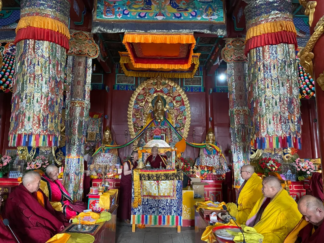 5月26日,藏历萨嘎月十五,嘉木扬·图布丹恩师在克什克腾旗庆宁寺为寺院僧众及居士讲经传法。