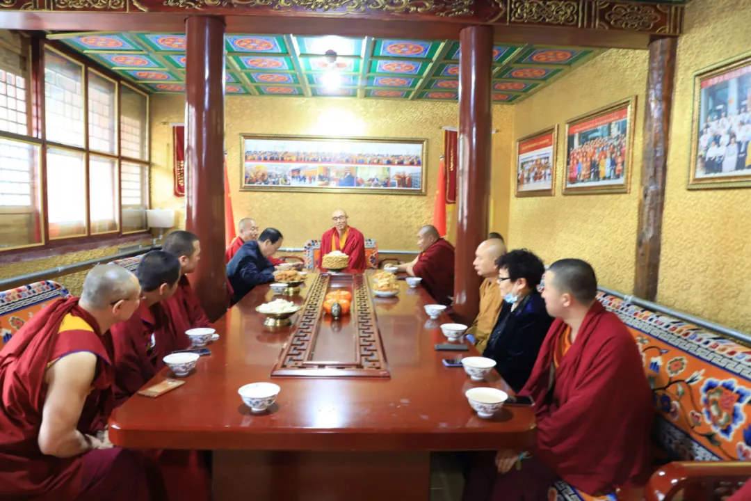 5月27日,藏历萨嘎月十六,嘉木扬·图布丹恩师在旦却坚赞会长、堪布多杰副会长、苏米亚老师等弟子的陪同下,来到锡林郭勒盟佛教协会参观考察。