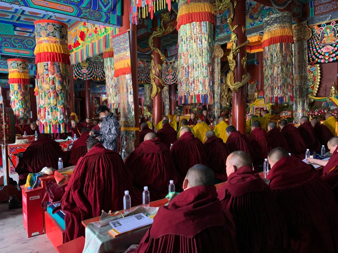 藏传佛教法会实训在克旗庆宁寺大雄宝殿举行。