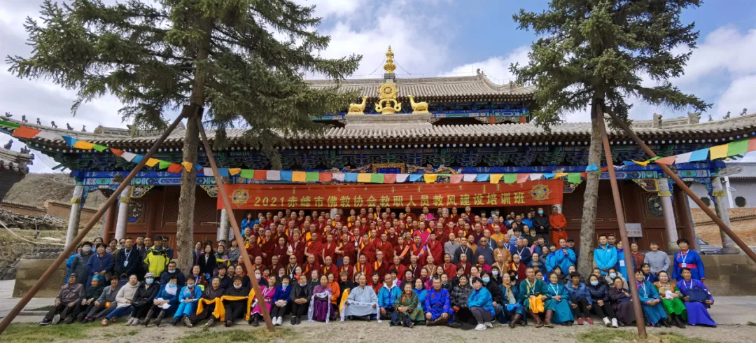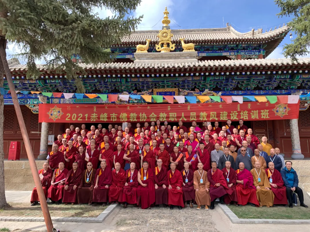 2021年4月26日至4月30日,赤峰市佛教协会教职人员教风建设培训班在克什克腾旗庆宁寺隆重举办。此次培训由市佛教协会主办,包括全市各旗县区佛教协会、各寺院及锡林郭勒盟佛教协会在内的49所寺院的116位僧人及50位居士代表,共计166名学员参加培训。