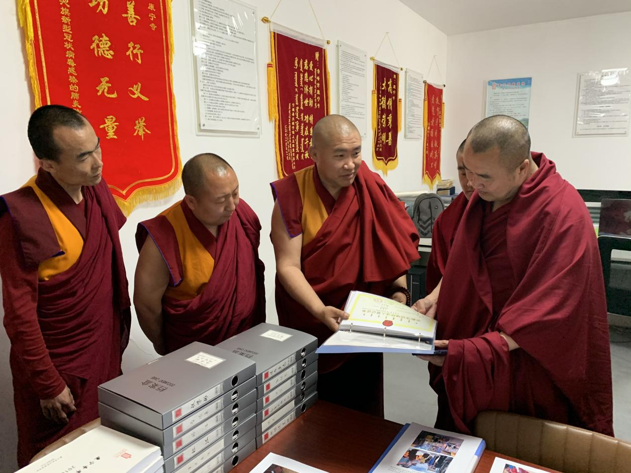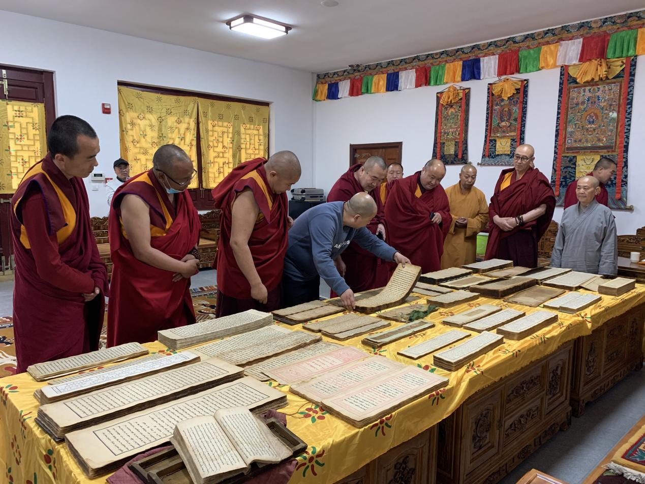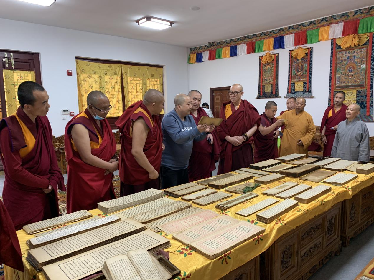 会议期间与会人员参观康宁寺收集的珍贵蒙文古籍文献经卷。