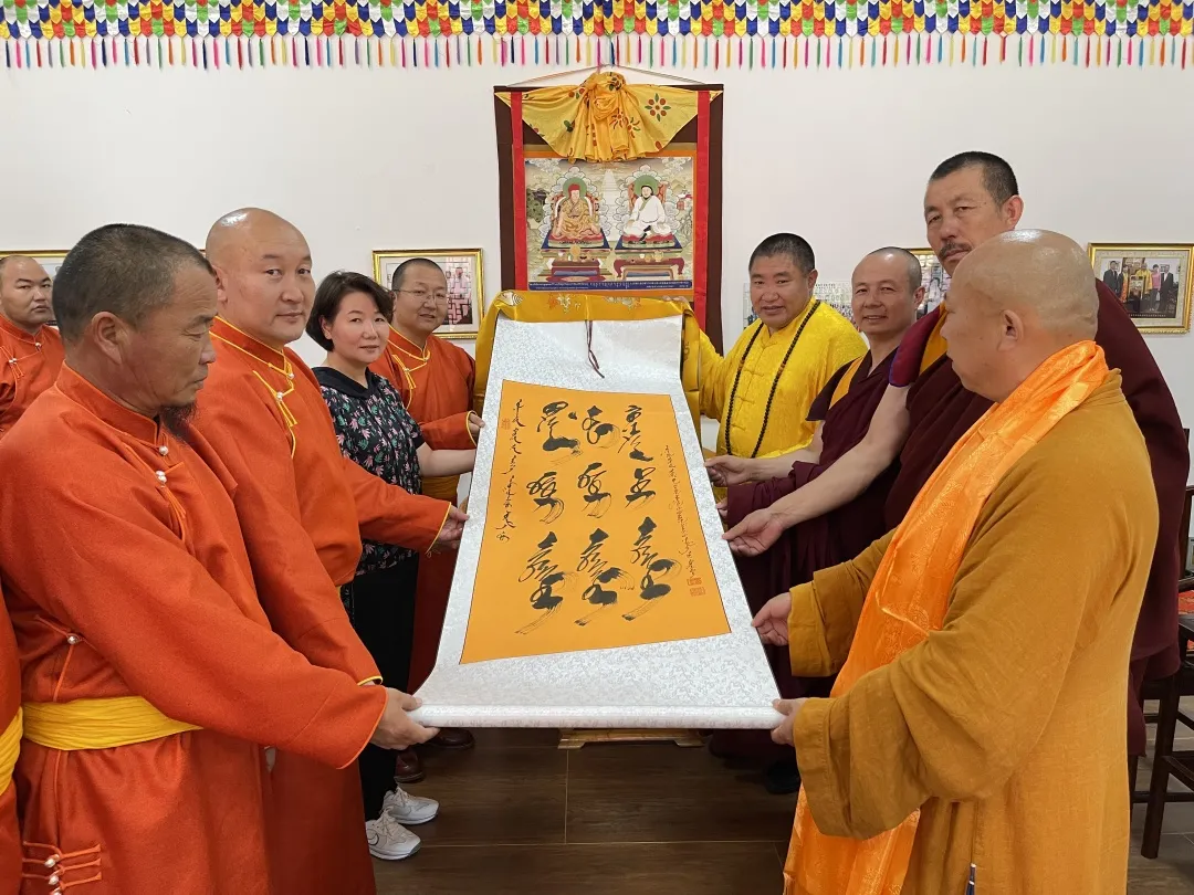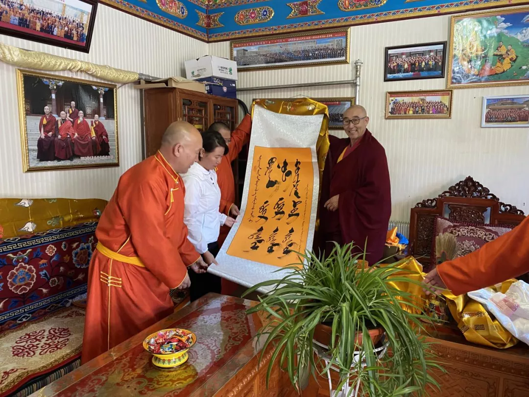8月24日,喀喇沁旗委统战部常务副部长、宗教局局长王保华带领宗教事务服务中心主任孙雪垠,喀喇沁旗佛教协会会长、康宁寺住持堪布多杰,佛教协会常务理事、康宁寺蒙语领经师洛珠嘉布一行前往杭锦旗佛教协会回访。